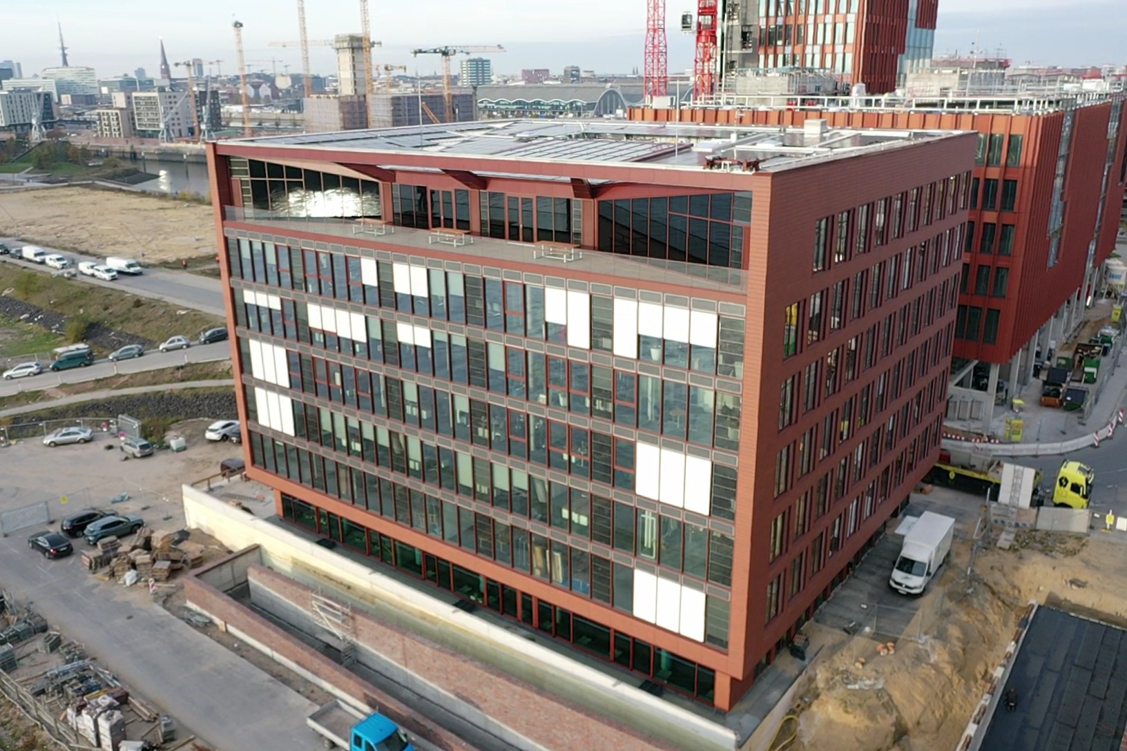 Der Neubau der Enerparc AG entstand auf dem Baufeld 118 in der östlichen Hafencity. Besonderes Gestaltungsmerkmal ist das durchgehende Atrium im Mittelpunkt des Gebäude mit seiner 17 m hohen Grünwand.